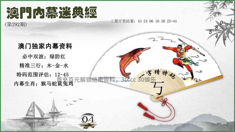287期:稳准三季✨【夏冬秋】✨开:猴34准 |